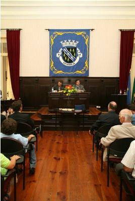 Aqui enquanto Presidente da AM, acompanhando um homenageado que é também ladeado pelo Presidente da Câmara Municipal, José Eduardo de Matos.