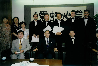 Recepção oficial na Câmara Municipal de Sendai, com o Sr. Presidente e alguns assessores. Nota-se que o Rui Lucas está especialmente bem inserido no contexto. Todos temos nas mãos algumas lembranças entregues e recebidas. Da nossa parte houve a colaboração de diversas Câmaras Municipais e Governos Civis. Lembramos também especialmente o amargo do chazinho de limão que foi servido (nas tacinhas que estão sobre a mesa) enquanto tinhamos de manter o sorriso permanente. Aprendemos também a importância das vénias e como o seu ângulo diminui consoante a importância do interlocutor.