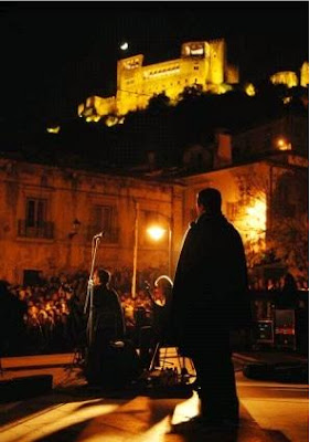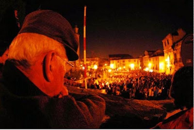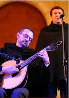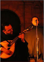 Sempre achámos muito curiosas as fotos anterior e posterior, até porque foram feitas durante a execução do mesmo tema. Se repararmos, os instrumentistas estão a fazer exactamente o mesmo, o que igualmente acontece com as posições corporais dos cantores. As únicas diferenças são mesmo as companhias no improvisado palco e sobretudo os guarda-chuvas que nos protegeram da inclemência do tempo e deram uma certa "cor" ao ambiente.