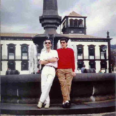 João Paulo Sousa e Rui Lucas em pose na Praça do Município do Funchal. De notar o então na moda "pé de gesso" como se poderá notar aqui em futuros post's.